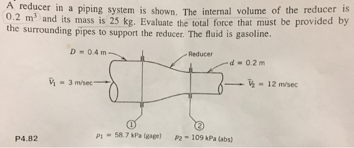 A Reducer In A Piping System Is Shown