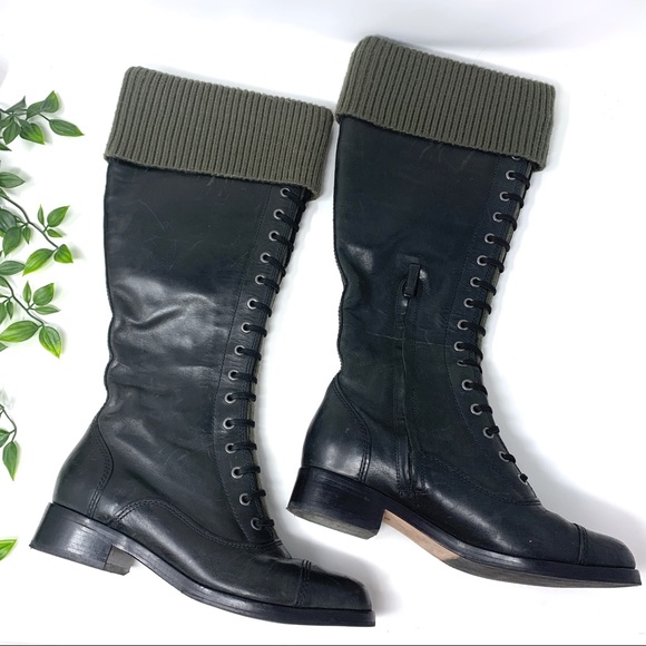 Cole Haan black 100 Merino wool zip up turtle neck sweater with lamb skin trim. Cole Haan is a proponent of elegant innovation and believes in the collision of craft style and engineering. Meet Generation ZerøGrand II.